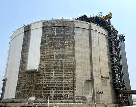 北燃天津南港LNG應(yīng)急儲備項目的薄膜型LNG儲罐是目前全球最大的陸上LNG薄膜罐,是為北京市提供安保用氣、加速京津冀一體化的重點項目,我司承攬此項目二、三階段共計六臺薄膜罐的防潮層施工工作